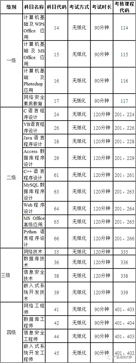 广东海洋大学2018年3月计算机等级考试报名公告